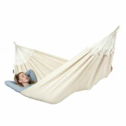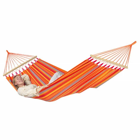 Avec son tissu de 140 cm de largeur, il combine le confort exceptionnel du hamac classique et l’aspect décoratif du hamac à barres. Très confortable pour une personne.