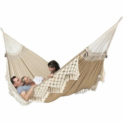 Avec son format généreux, ce hamac classique peut accueillir toute la famille. La taille king-size offre le meilleur confort possible avec sa toile de 180 cm de largeur.