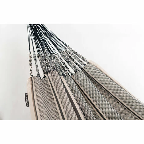 Le style de hamac „Cadejo“ est très représentatif de l’artisanat colombien. Les multiples possibilités d’accrochage qu’offrent les nombreux de cordons de suspension permettent une répartition optimale du poids. Le hamac ne peut pas se déformer et vous profitez d’un véritable confort.
