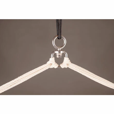 Grâce au tourbillon intégré tu peux pivouter dans toutes les positions dans ta chaise-hamac, sans que la corde de la suspension ne s´entortille.