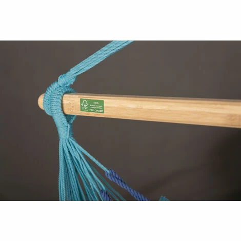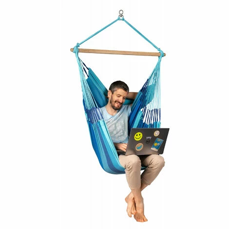 On mesure la qualitĂ© d’une chaise-hamac Ă la quantitĂ© de lacets de suspension – plus leur nombre est Ă©levĂ©, plus le hamac est de qualitĂ© supĂ©rieure. Les lacets assurent non seulement une meilleure rĂ©partition du poids, mais garantissent aussi un confort renforcĂ© et une plus grande longĂ©vitĂ© Ă la chaise hamac.