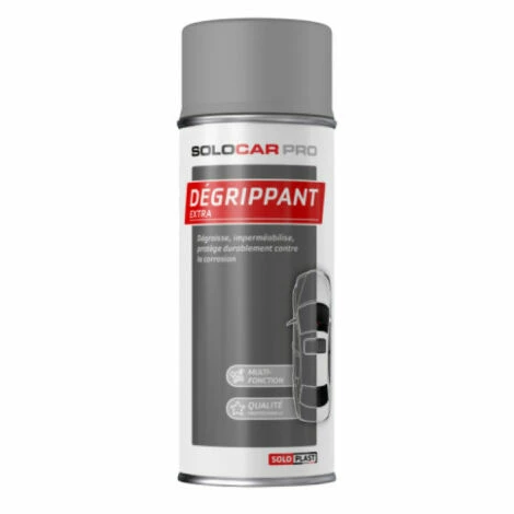 Le dégrippant extra Solocar Pro 400mlpénètre en profondeur grâce à sa lente évaporation et à sa faible surface de tension. Le dégrippant extra solocarpro permet une protection durable contre la corrosion et empêche la pièce de se gripper à nouveau. Il est un imperméabilisant et un anticorrosif. Il possède une pulvérisation puissante et est classé R10 (ininflammable en dessous de 40°C).